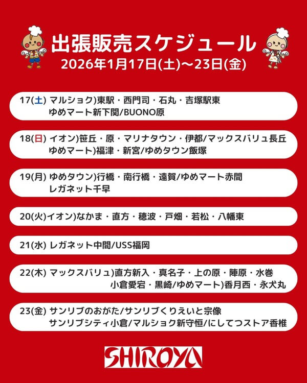 シロヤより大切なお知らせです🚩